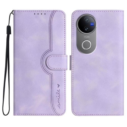 Funda de Piel con Diseño de Corazón para Vivo V50 (Morado)