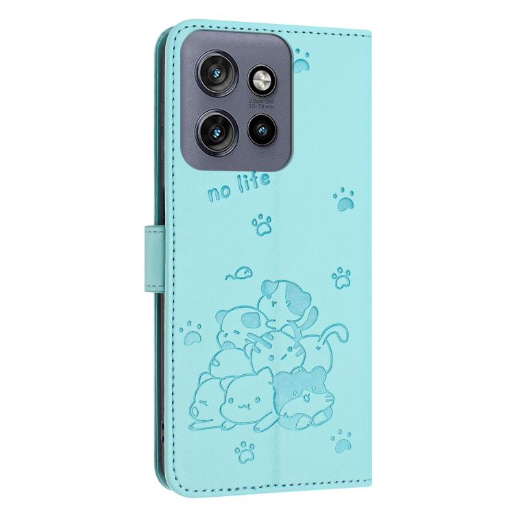 Funda de Piel para Motorola Moto G Power/G Play (2025) con Diseño de Gatito en Relieve y Cordón (Verde Menta)