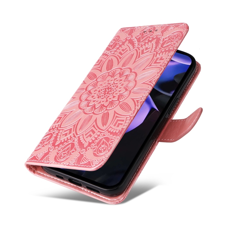 Funda de Piel Google Pixel 9A Diseño Girasol en Relieve (Oro Rosa)