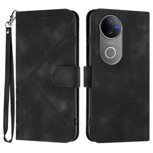 Funda de Piel con Diseño de Líneas para Vivo V50 (Negra)