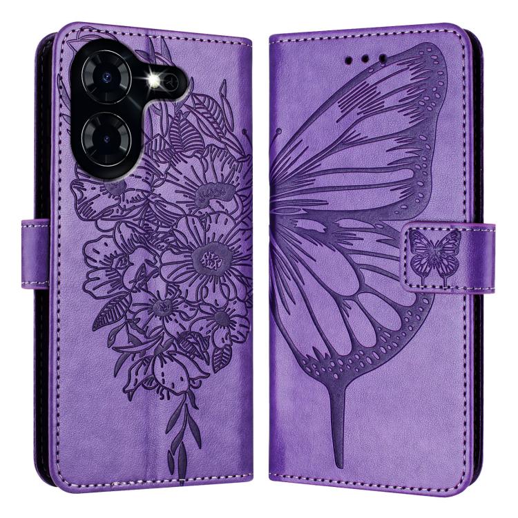 Funda de piel con diseño de mariposa en relieve para Tecno Pova 5 4G (morado claro)