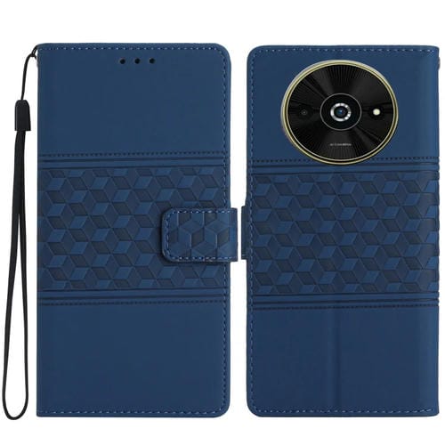 Funda de Piel con Efecto Piel En Relieve de Diamante para Xiaomi Poco C61 (Azul Oscuro)