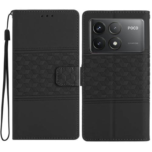 Funda de Piel con Efecto Piel En Relieve de Diamante para Xiaomi Poco F6 Pro (Negra)