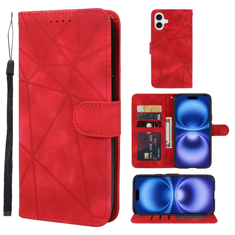 Funda de Piel para iPhone 16 Líneas Geométricas Tacto Sedoso (Rojo)