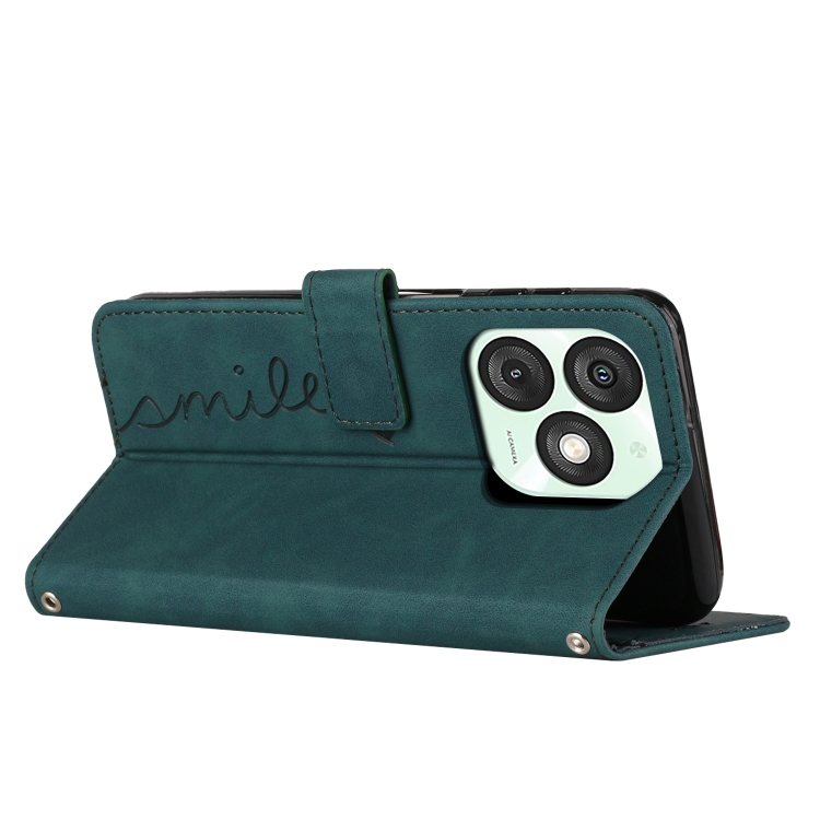 Funda de Piel con Relieve de Corazón y Cordón Largo para Teléfono Itel A50 (Verde)