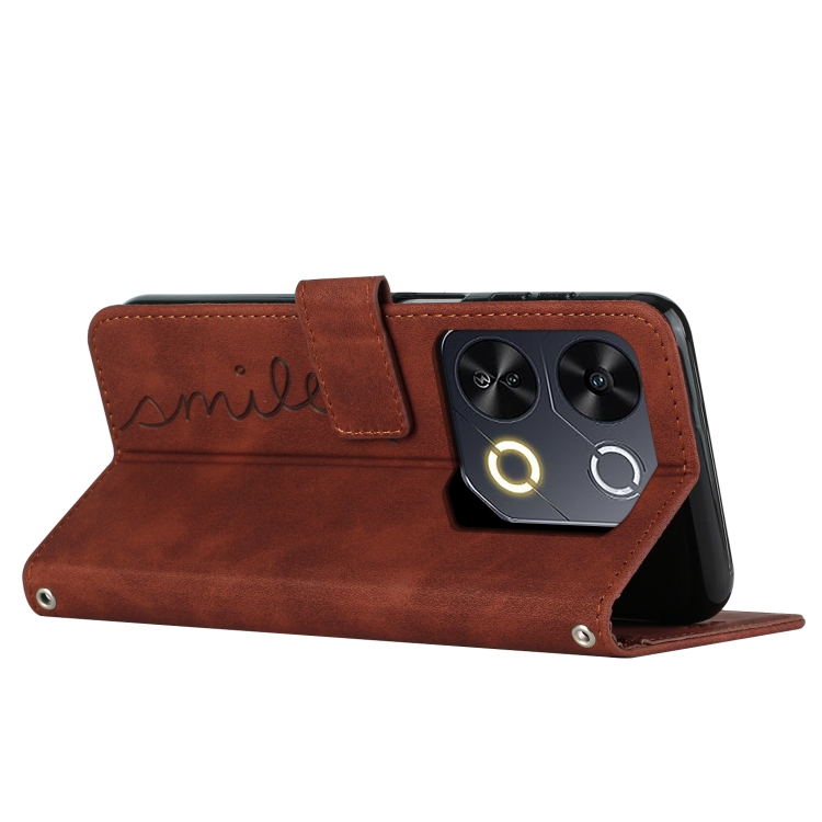 Funda de Piel con Relieve de Corazón y Cordón Largo para Teléfono Itel P65 (Marrón)