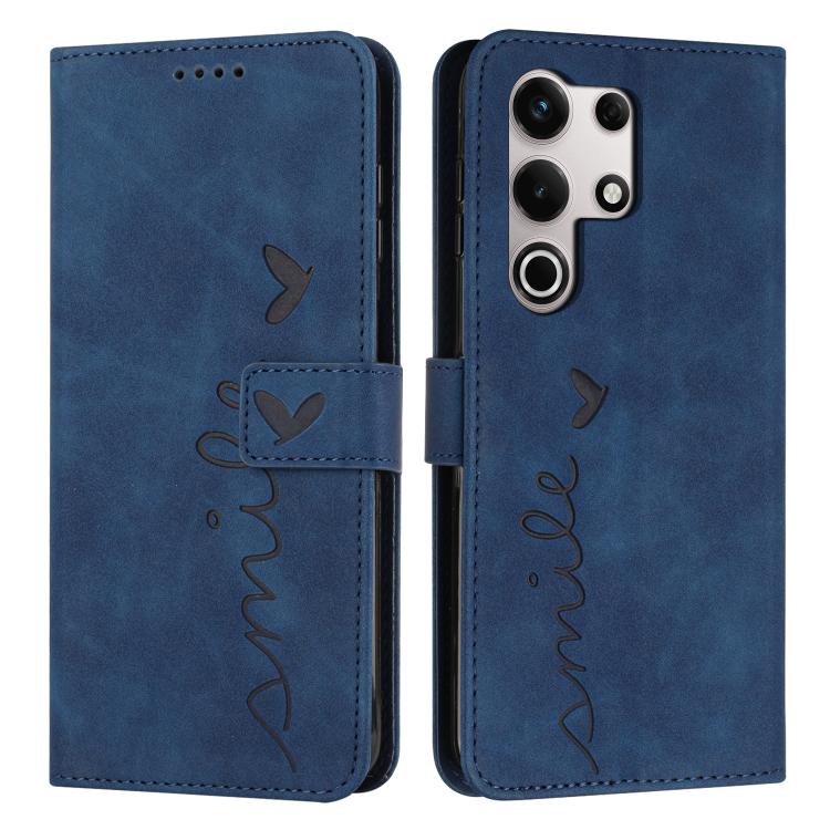 Funda de Piel con Relieve de Corazón y Cordón Largo para Teléfono Itel S25 Ultra (Azul)