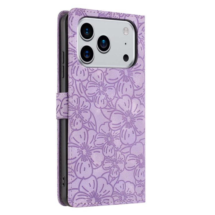 Funda de piel con relieve de flores de cerezo para iPhone 17 Pro (morada)