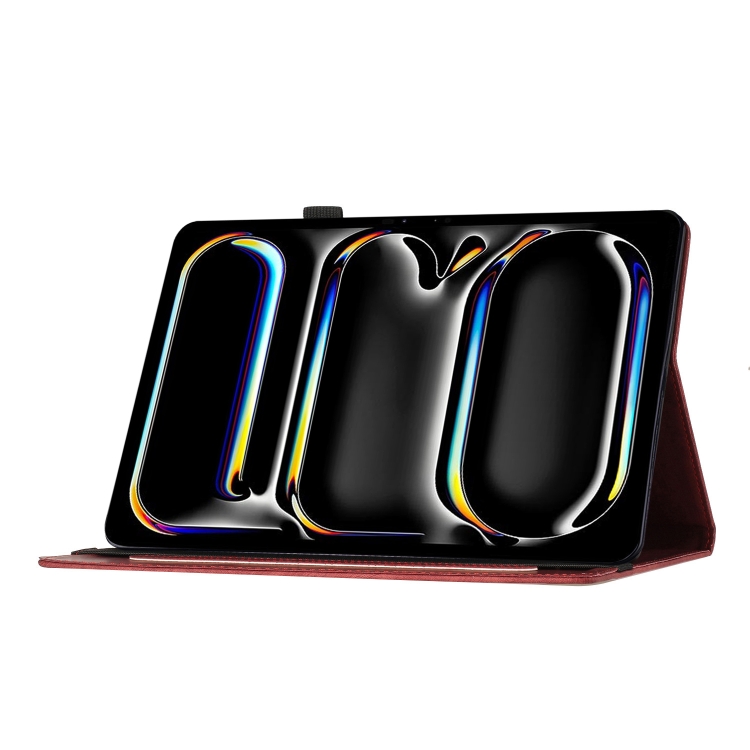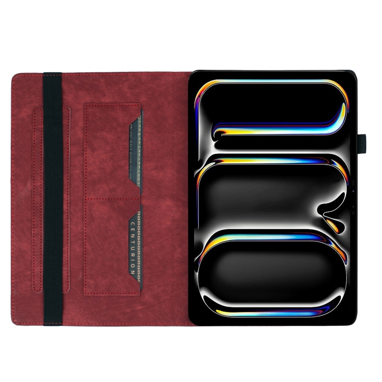 Funda de Piel para iPad Pro 11 (2024) con Estampado de Mariposa y Gato (Roja)