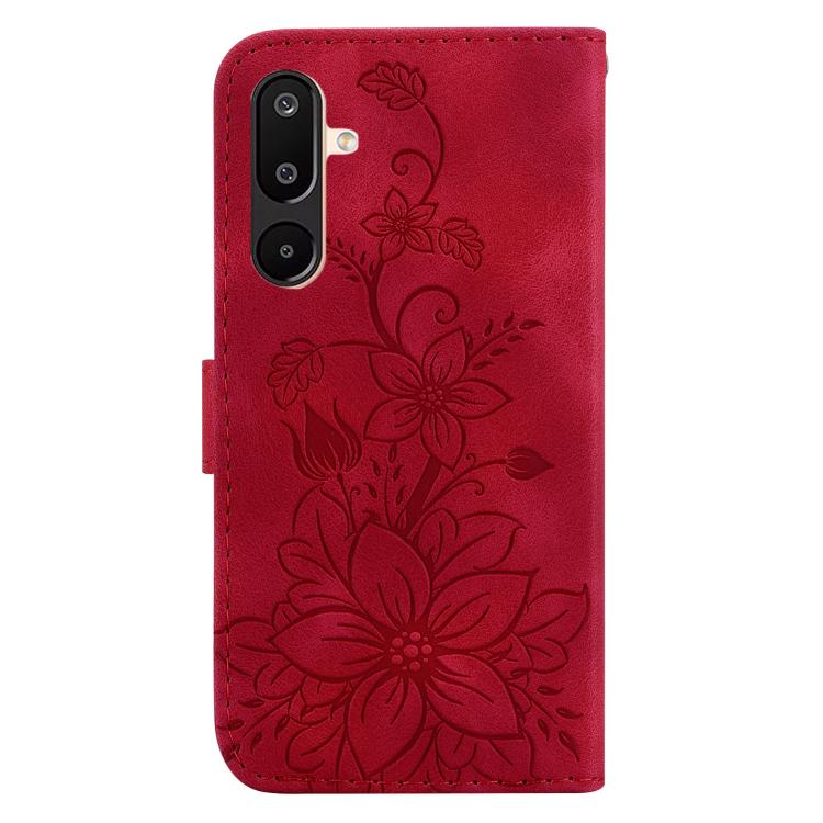 Funda de piel con relieve de lirio para Samsung Galaxy M16 5G / F16 5G / M36 5G (roja)
