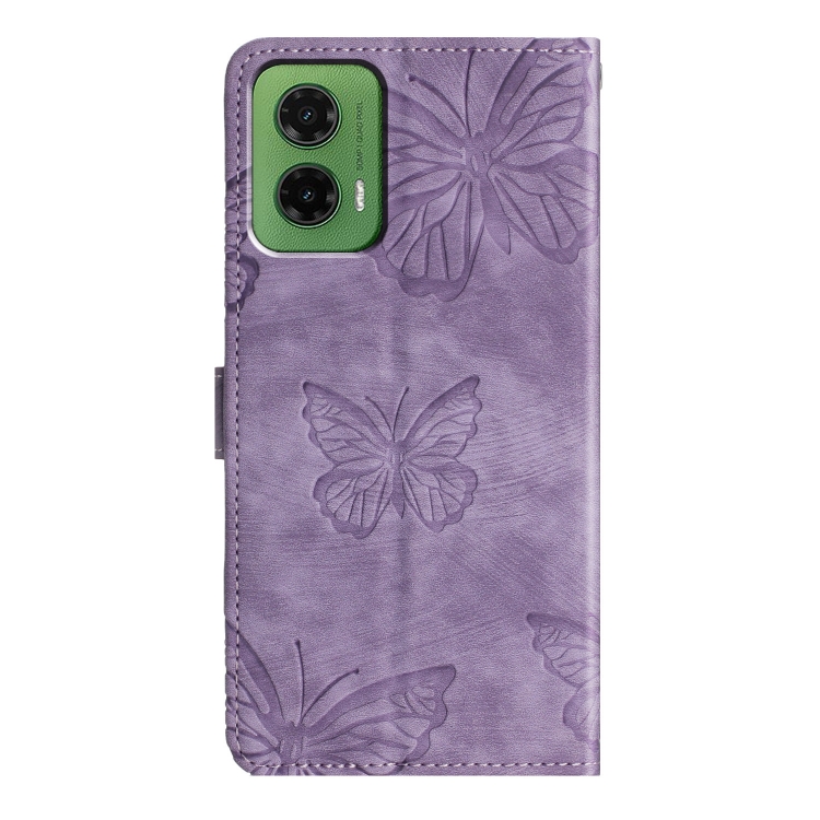 Funda de Piel con Relieve de Mariposa para Motorola Moto G35 (Morado)