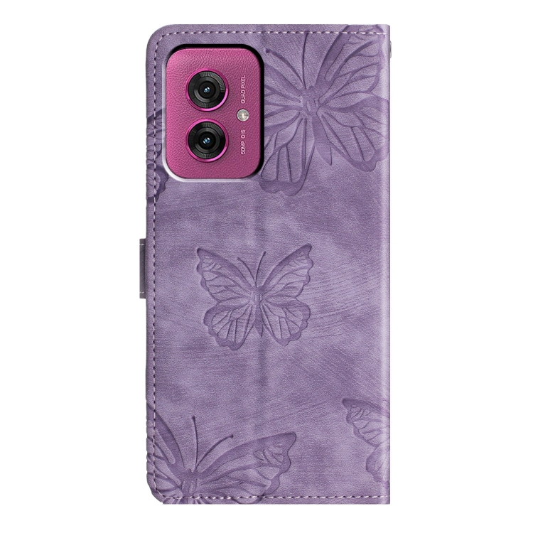 Funda de Piel con Relieve de Mariposa para Motorola Moto G55 (Morado)