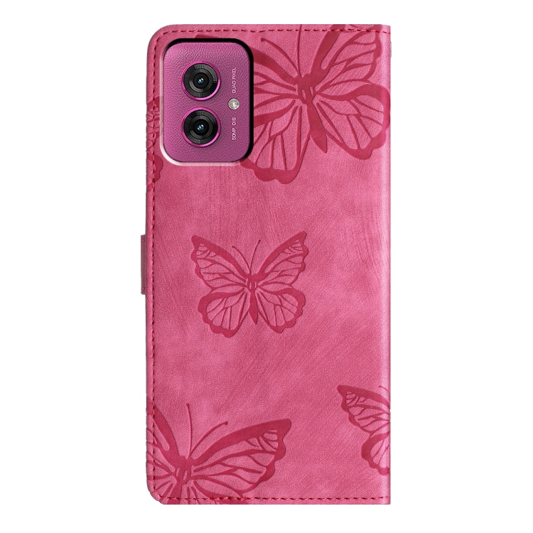 Funda de Piel con Relieve de Mariposa para Motorola Moto G55 (Rosa Rojo)