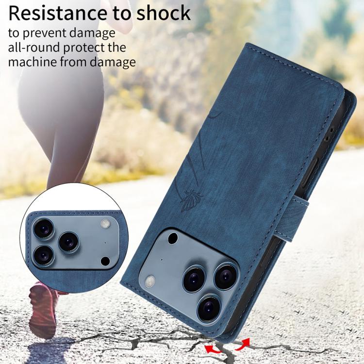 Funda de piel con relieve de mariposa y orquídea para iPhone 17 Pro Max (azul)