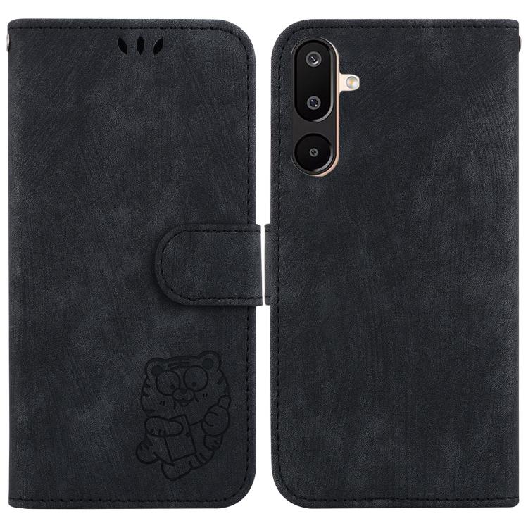 Funda de piel con relieve de tigre para Samsung Galaxy M16 5G / F16 5G / M36 5G (negra)