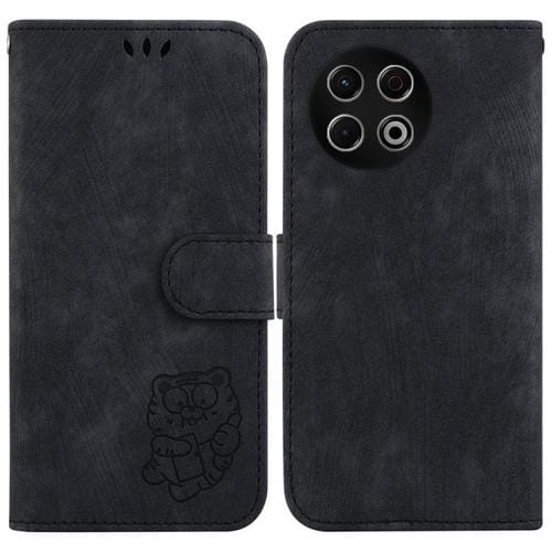 Funda de piel con relieve de tigre para Tecno Spark 30 Pro (negra)