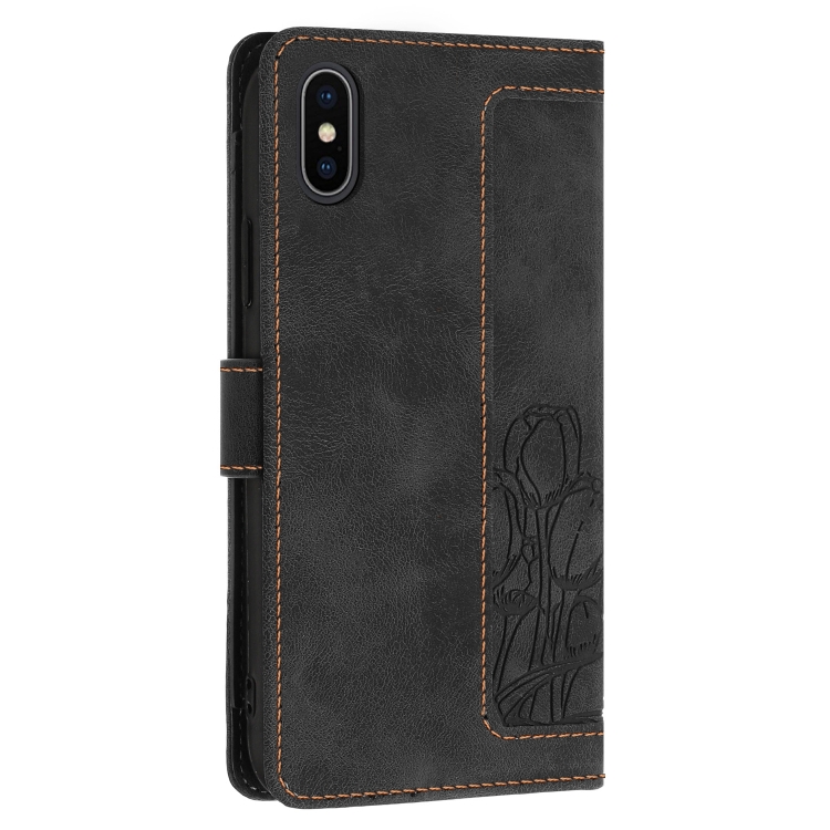 Funda de Piel con Relieve de Tulipanes para iPhone Xs/X con Cordón (Negro)