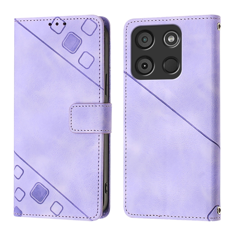 Funda de Piel con Relieve para Teléfono Itel A60/A60S (Morado Claro)