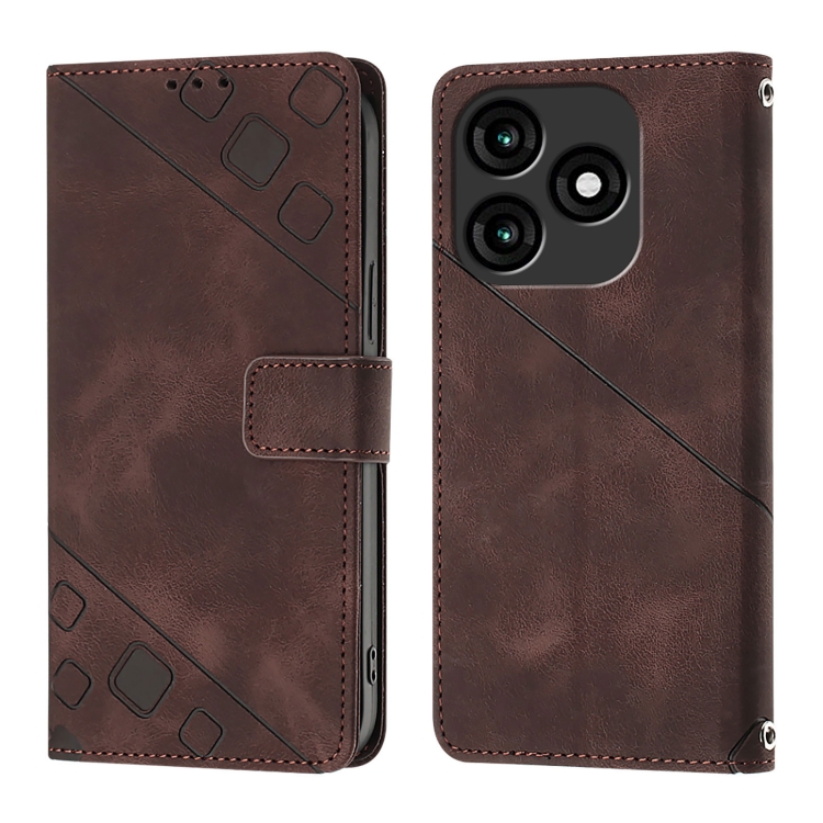 Funda de Piel con Relieve para Teléfono Itel A70 (Marrón)
