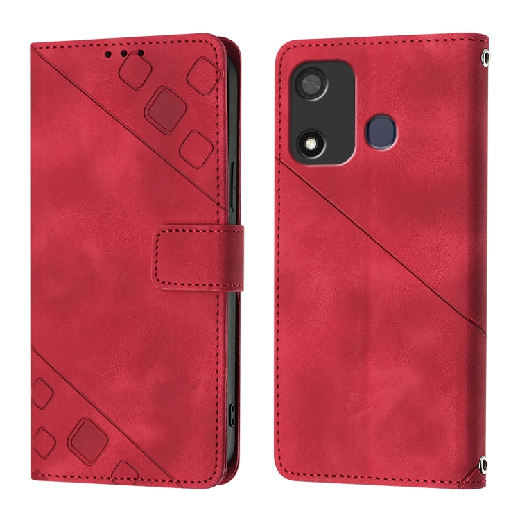 Funda de Piel con Relieve para Teléfono Itel P17/A27 (Roja)
