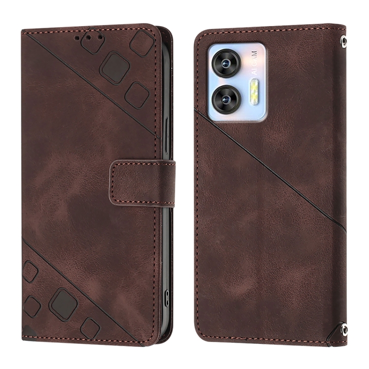 Funda de Piel con Relieve para Teléfono Oukitel C36/C35 (Marrón)