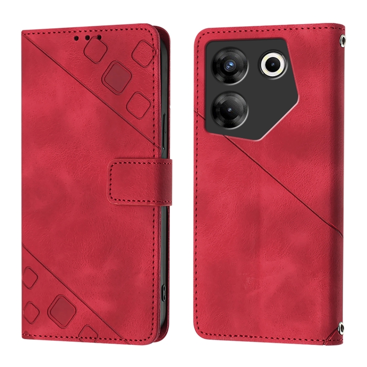 Funda de Piel con Relieve para Teléfono Tecno Camon 20 Pro 5G (Rojo)
