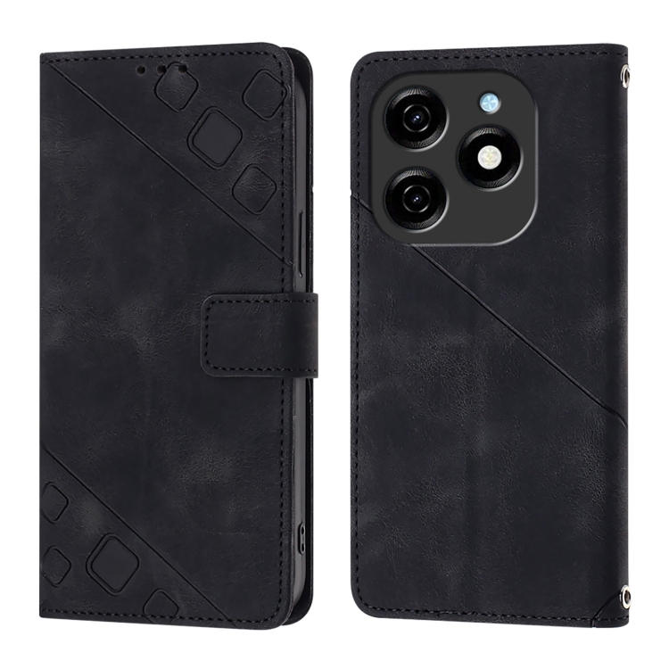 Funda de Piel con Relieve para Teléfono Tecno Spark 20 Skin Feel (Negra)