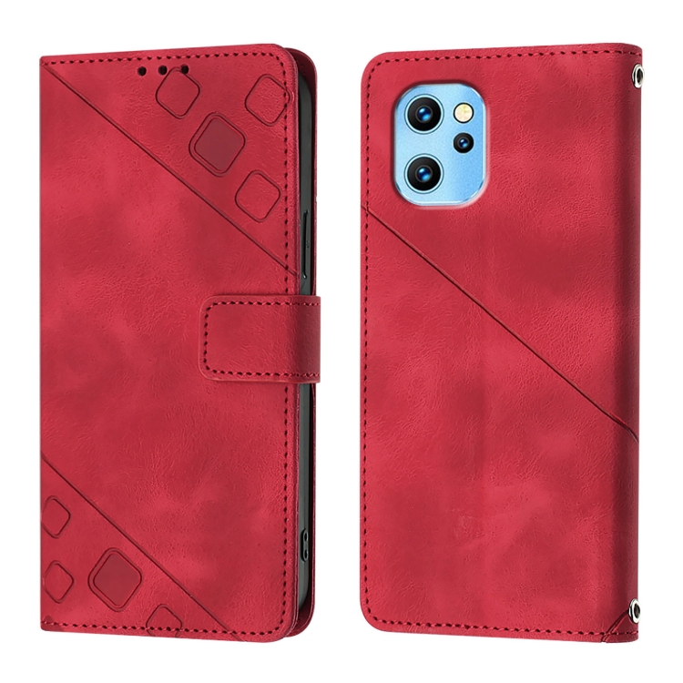 Funda de Piel con Relieve para Teléfono Umidigi Power 7 Max (Roja)