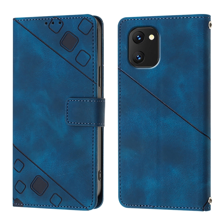 Funda de Piel con Relieve para Teléfono Umidigi Power 7 y Power 7S (Azul)