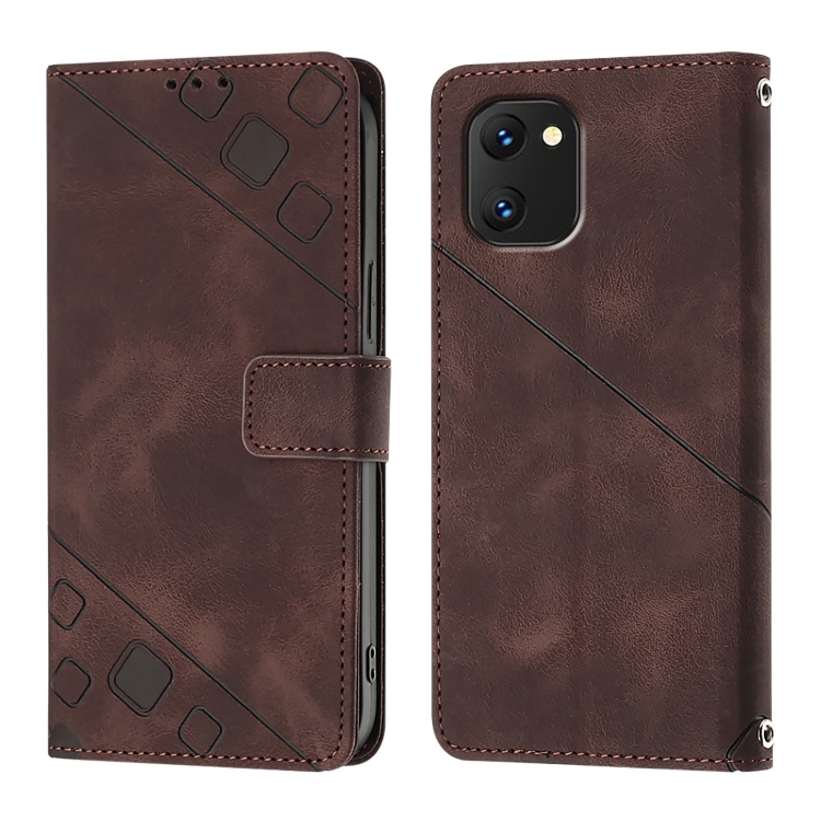 Funda de Piel con Relieve para Teléfono Umidigi Power 7 y Power 7S (Marrón)