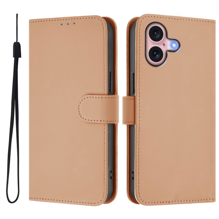 Funda para iPhone 16 con Cordón Piel Tacto Piel Color Liso (Desnudo)