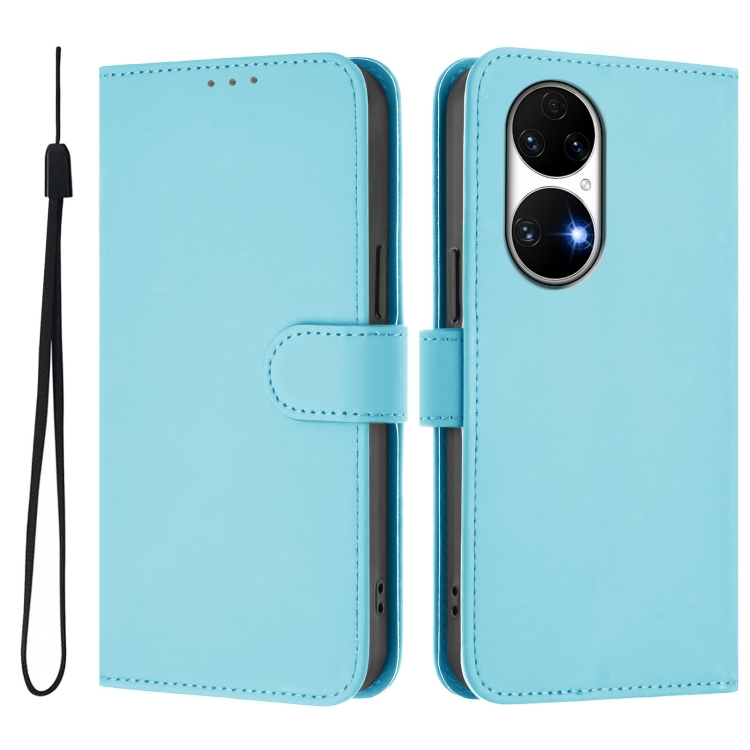 Funda de Piel para Huawei P50 con Cordón (Azul Cielo) Tacto de Piel Liso