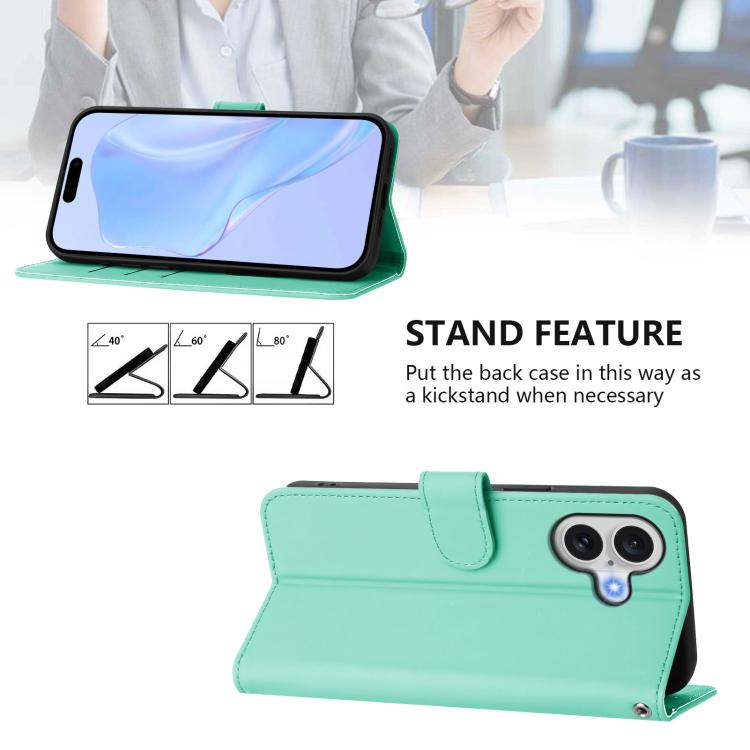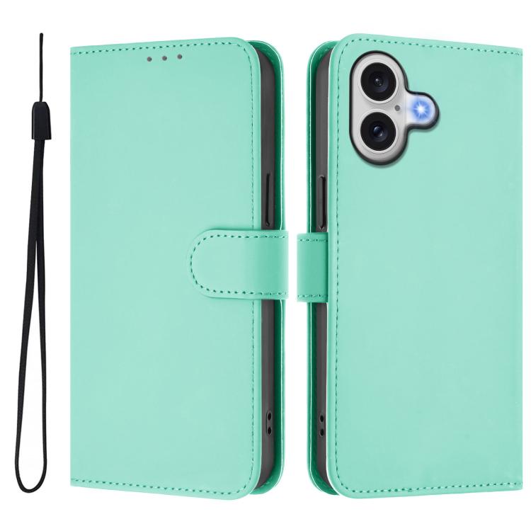 Funda de piel con tacto suave y color liso para iPhone 17 con cordón (verde menta)