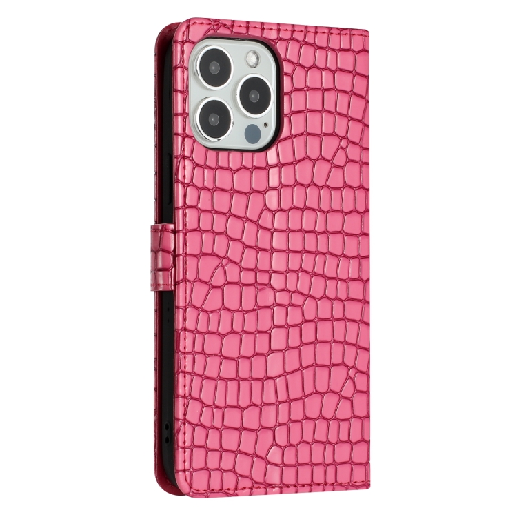 Funda de Piel con Tapa Horizontal Textura Cocodrilo para iPhone 16 Pro Max (Rosa Rojo)