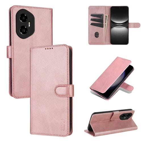 Funda de Piel con Tapa Azns para Honor 300 (Oro Rosa) Textura de Becerro y Tacto Suave