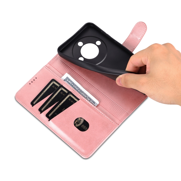 Funda de Piel con Tapa Textura de Becerro para Honor X60 Azns (Oro Rosa)