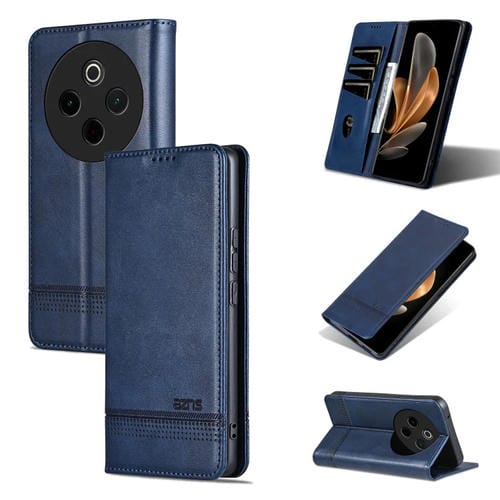 Funda Magnética Azns de Piel con Textura de Becerro para Vivo Y300 Pro (Azul Oscuro)
