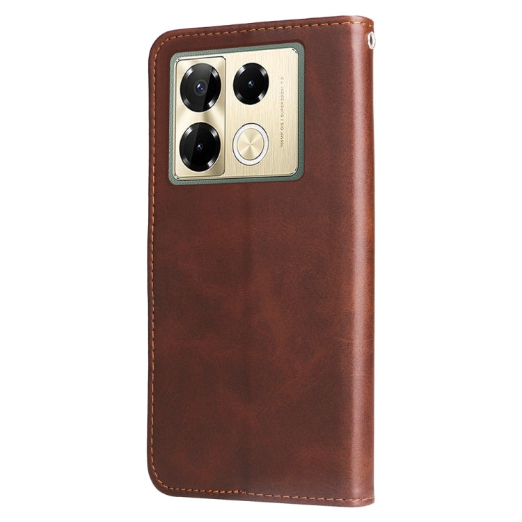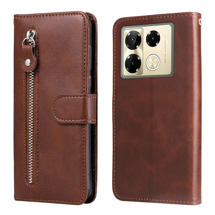 Funda de Piel Textura Becerro con Cremallera para Infinix Note 40 Pro 4G/5G y Note 40 Pro+ (Marrón)