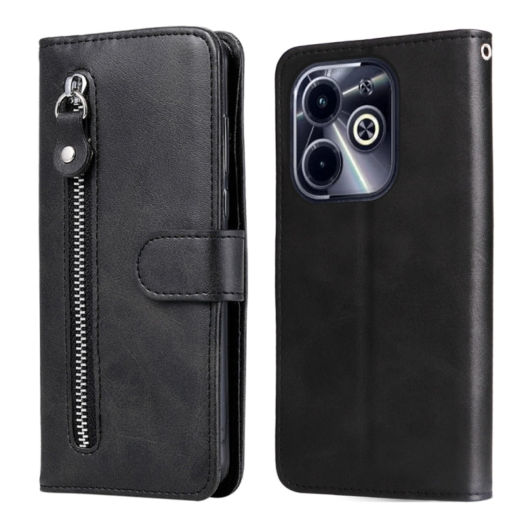 Funda de Piel Textura de Becerro con Cremallera para Teléfono Infinix Hot 40I (Negra)