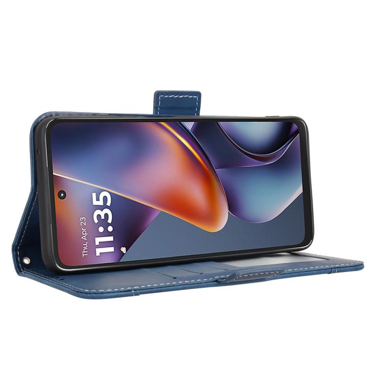 Funda de Piel con Textura de Becerro y Ranuras para Tarjetas Motorola Moto G Play (2025) (Azul)