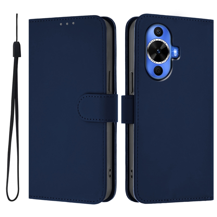 Funda de Piel para Huawei Nova 12S 4G con Textura Liso y Cordón (Azul Marino)