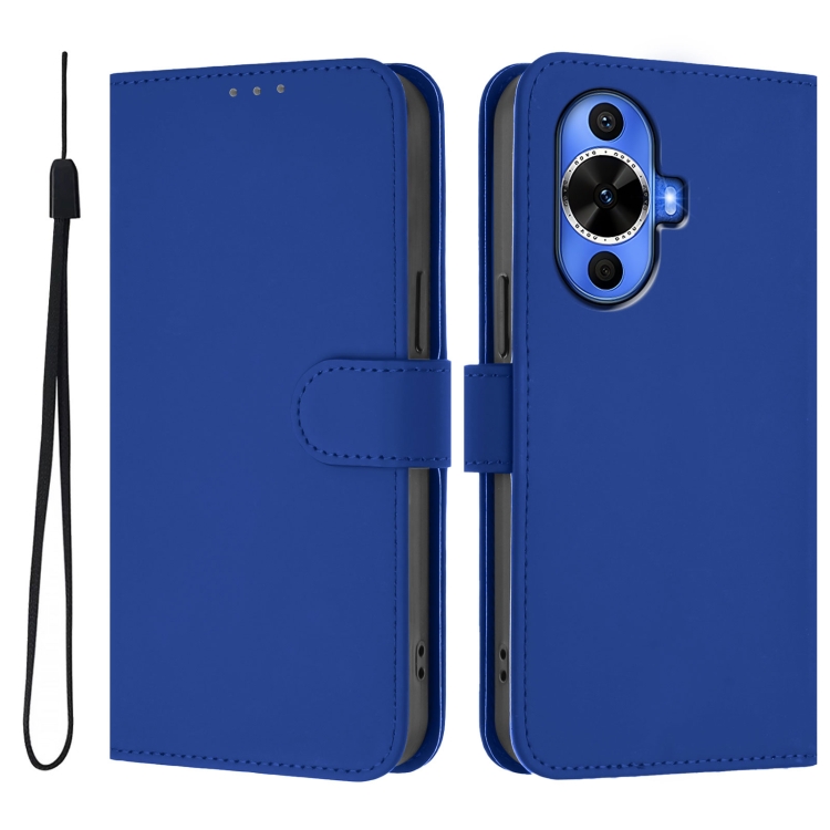 Funda de Piel para Huawei Nova 12S 4G con Textura y Cordón (Azul Oscuro)