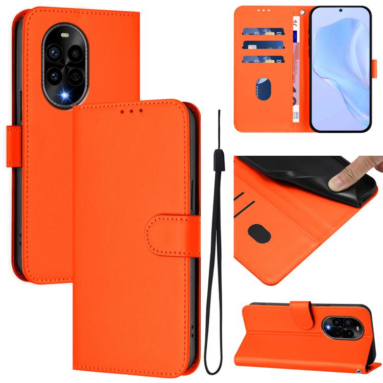 Funda de Piel con Textura para Huawei Nova 13 Pro con Cordón (Naranja)