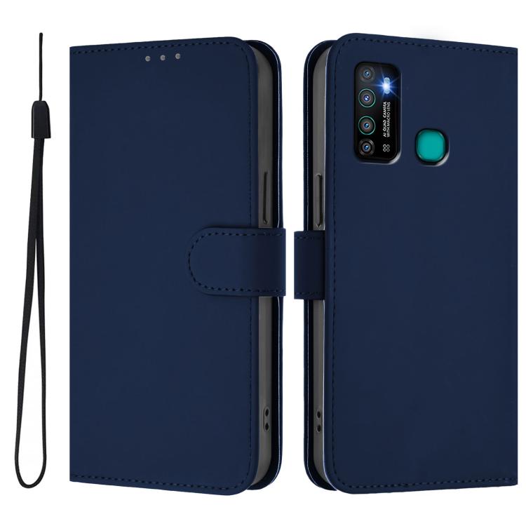 Funda de Piel para Tecno Camon 15 con Textura Lisa y Cordón (Azul Marino)