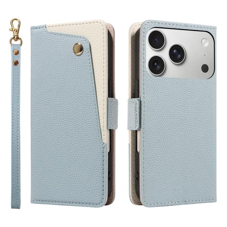 Funda de piel con textura de lichi y espejo para iPhone 17 Pro (Azul)