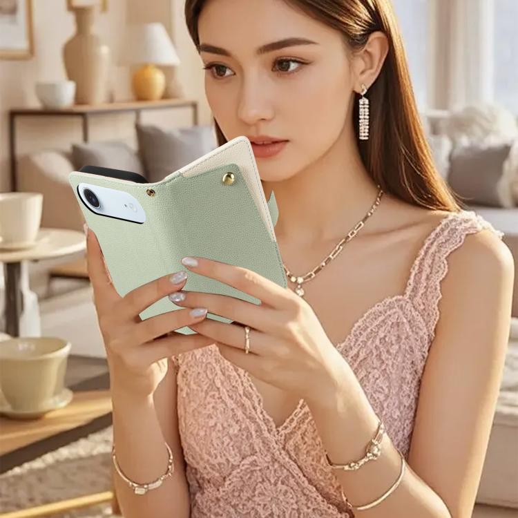 Funda de piel con textura de lichi y espejo para iPhone Air (verde)