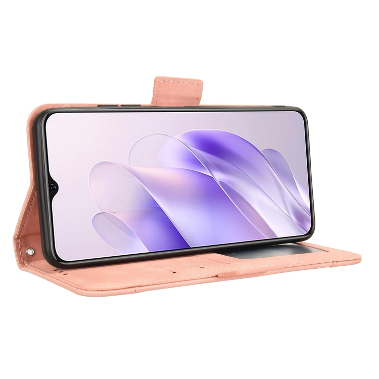 Funda de Piel con Textura de Becerro y Ranuras para Tarjetas para Oukitel C37 (Rosa)