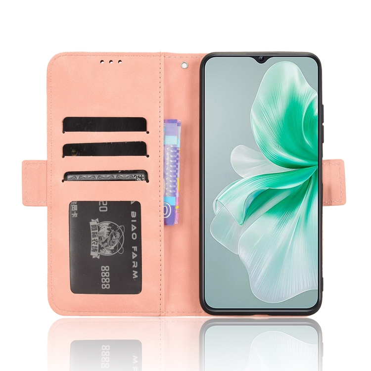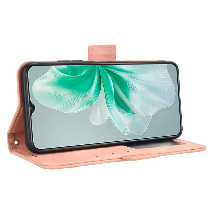 Funda de Piel para Oukitel C38 con Textura de Becerro y Ranuras para Tarjetas (Rosa)