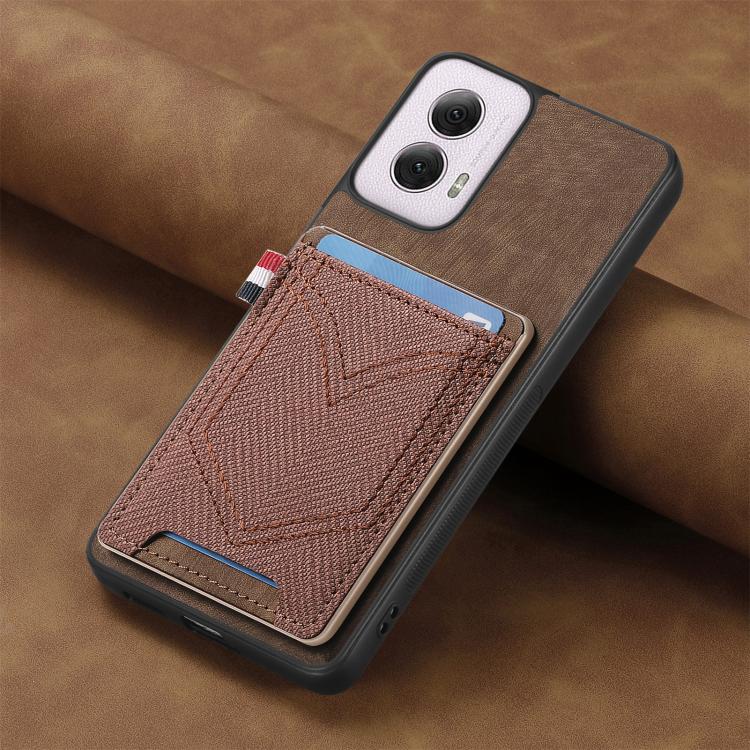 Funda de Piel con Textura Vaquera para Motorola Moto G Power 5G 2024 con Ranura para Tarjetas (Marrón)