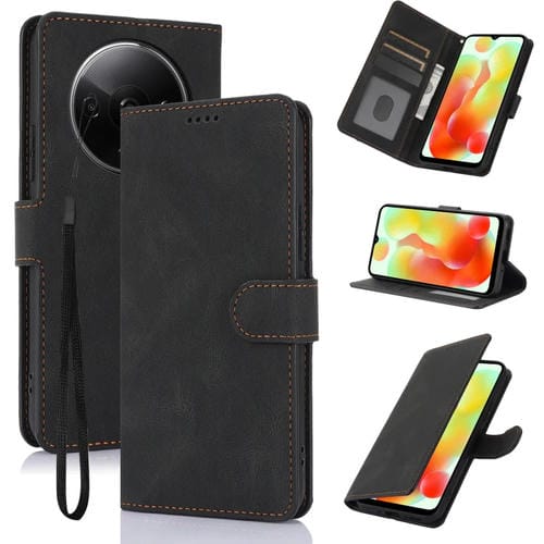 Funda de Piel de Becerro con Textura de Piel de Becerro y Tacto Fantástico para Xiaomi Poco C61 4G (Negra)